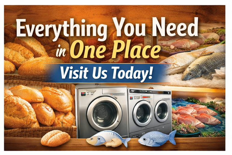 With multiple services in one place—laundromat, bakery, fish store, and variety shop—you can meet your daily needs